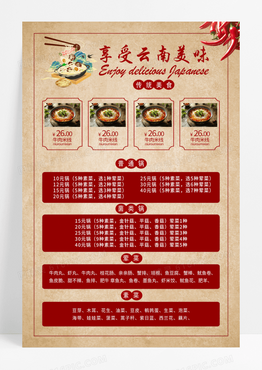 牛皮纸复古风享受云南美味过桥米线菜单海报