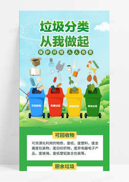 绿色清新插画垃圾分类从我做起垃圾分类手机长图