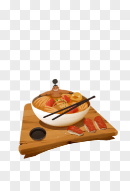手绘卡通女孩冬天拿筷子吃拉面免抠元素