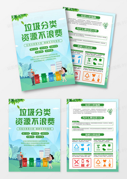 绿色简洁卡通小清新垃圾分类资源不浪费宣传单垃圾分类宣传单