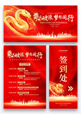 红色光效烫金风2025科技高峰论坛活动宣传海报展板展架组图