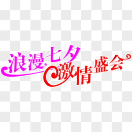 浪漫七夕甜蜜放送红色花体字七夕情人节