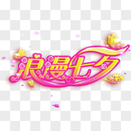 浪漫七夕粉黄艺术字