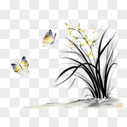 一组手绘梅兰竹菊花卉元素 文字诗句合成元素