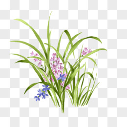 一组手绘国潮风花卉植物之兰花草元素