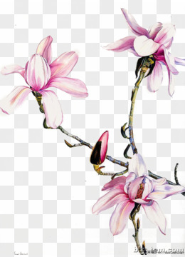 紫红色水彩木兰花
