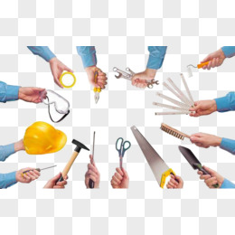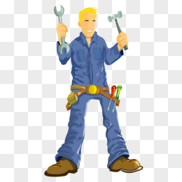 手绘卡通风蓝领工人修理零件场景元素