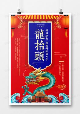 红蓝大气龙抬头海报