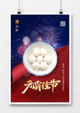 创意红蓝中国风元宵节海报