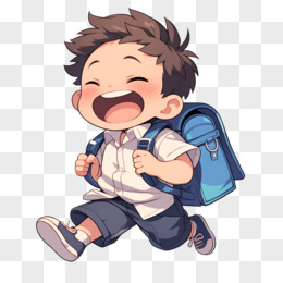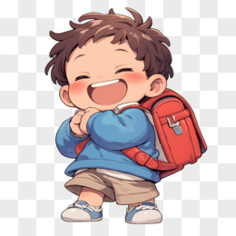 卡通风开学季带蓝色帽子背书包的小男孩免抠元素