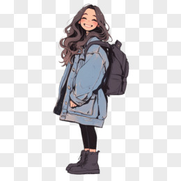 卡通风开学季戴帽子的女中学生背书包免抠元素