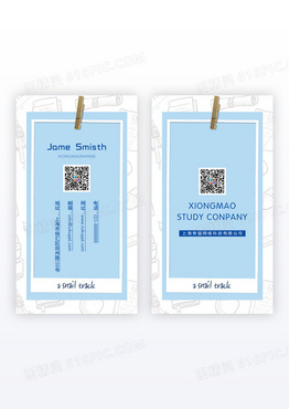 蓝色便签样式教育机构 教育机构名片竖版名片模版