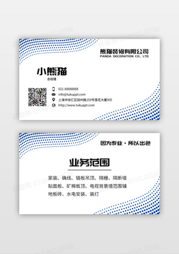 蓝色纯色几何线条装修装饰公司装饰名片装修名片