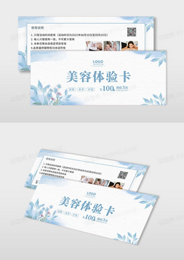 蓝色水彩美容体验卡优惠券代金券活动卡券美容体验会员卡