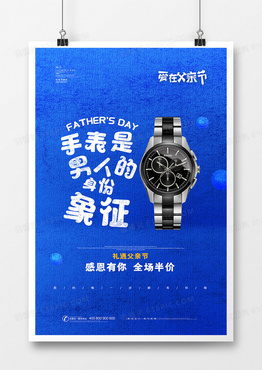 大气蓝色感谢父亲送父亲的礼物宣传海报