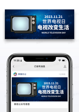 蓝色卡通世界电视日电视机蓝色公众号首图