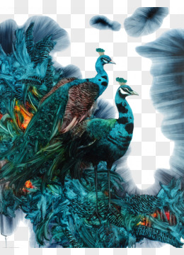 复古蓝色孔雀