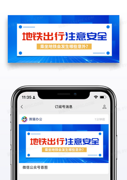 蓝色简约时尚地铁出行注意安全公众号封面配图图片