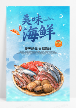 蓝色海洋餐饮美食美味海鲜促销宣传海报