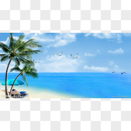 蓝天白云沙滩海浪蓝色海洋