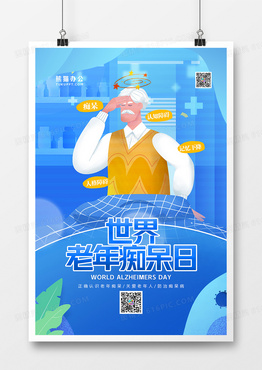 蓝色简约插画世界老年痴呆日海报设计