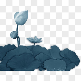手绘蓝色荷花