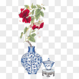 蓝色瓷瓶红色花朵