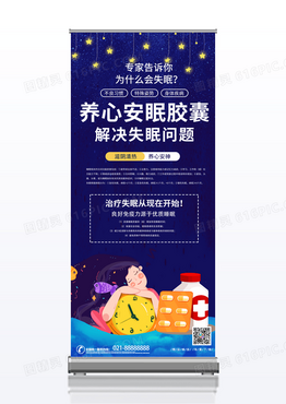 蓝色简约通失眠插画远离失眠睡眠健康管理药店宣传展架药品海报