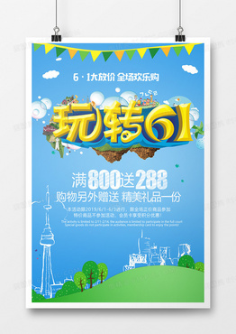 淡蓝色创意玩转61宣传海报