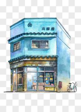 卡通蓝色的楼房
