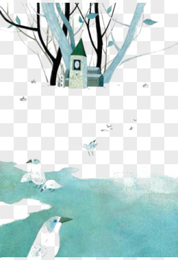 手绘树林的的小屋