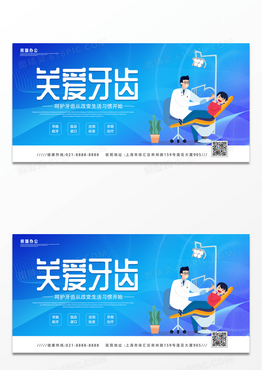 蓝色简约卡通手绘清新关爱牙齿口腔健康展板设计