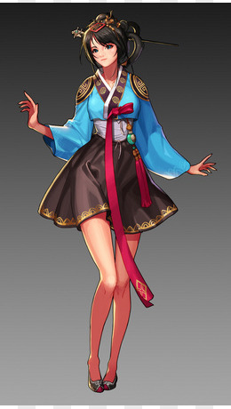 国潮插画穿蓝色汉服的小女孩放风筝免抠元素