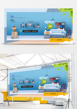 创意蓝色日系家具广告宣传展板设计