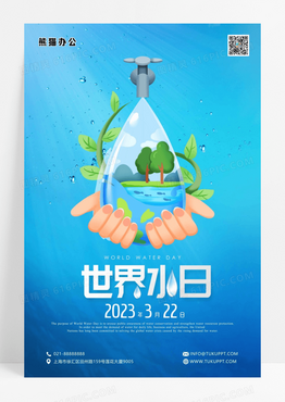 蓝色夏天卡通板绘拟人可爱人文水滴元素免抠