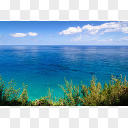 蓝色天空海水白云