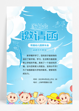 蓝色天空卡通幼儿园家长会邀请函家长会邀请函