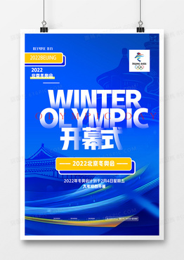 蓝色2022冬奥会开幕式海报设计