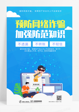 蓝色清新预防网络诈骗公益广告海报