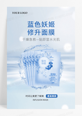 简约蓝色美容美肤蓝色妖姬休升面膜海报
