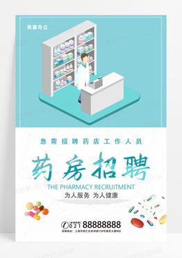 蓝色简约药房招聘宣传海报