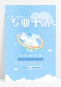 简约蓝色专业干洗海报