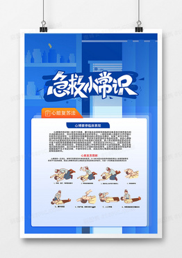 蓝色医疗急救小常识心脏复苏方法宣传海报设计