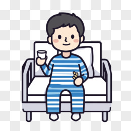 插画穿蓝色病人服的病人坐在病床上吃药免抠元素