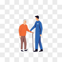 插画穿蓝色制服的护工搀扶老人走路免抠元素