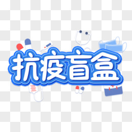 蓝色卡通立体医疗抗疫盲盒艺术字设计