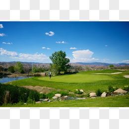 蓝天白云草地树木