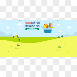 手绘蓝天白云绿草地