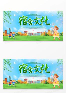 蓝色绿色卡通蓝天绿地孩童宿舍文化展板设计