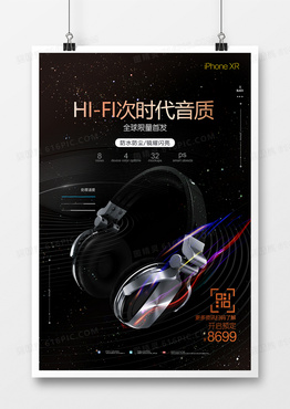 创意高端黑镜蓝牙头戴式耳机海报设计
